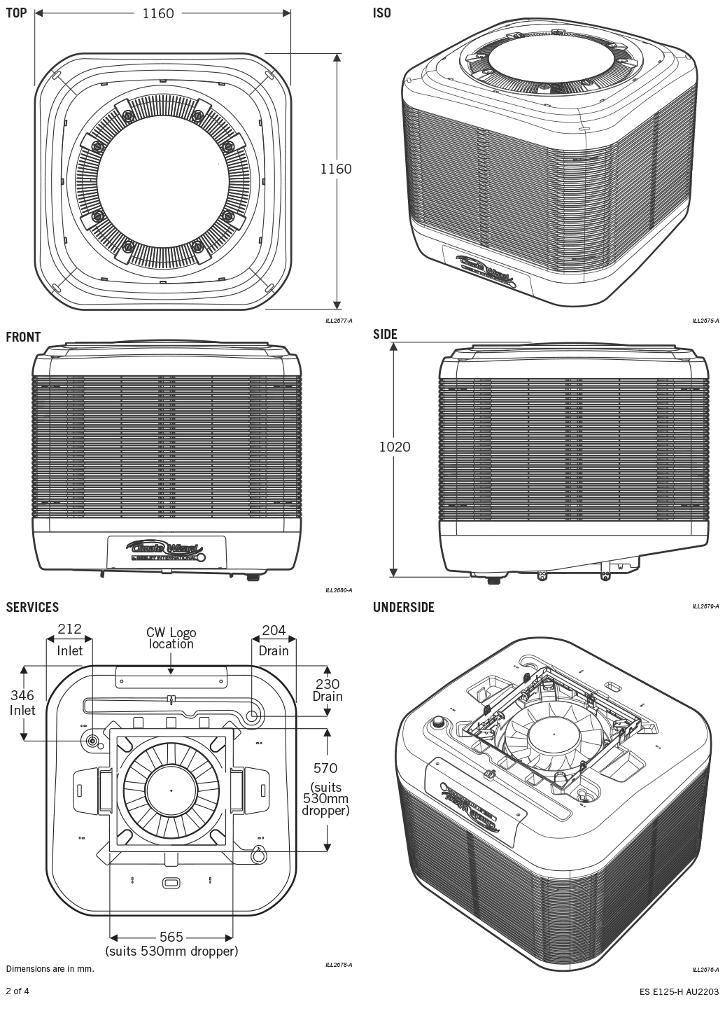 توصيل إمدادات المياه عبر موصل مرن والتي يتم إنهاؤها بحلمة ضغط 1/2 بوصة BSP. يتم الاحتفاظ بالمياه في خزان داخلي يشكل جزءًا لا يتجزأ جزء من خزانة البوليمر لتوفير سلامة الهيكل ولضمان المتانة ومقاومة التآكل. يتم تحقيق التشبع الأساسي للتبادل الحراري من خلال الداخل مضخات محمولة لتوصيل المياه إلى أنبوب مصمم خصيصًا نظام توزيع مياه غير مسدود يضمن استمراره تدفق موحد.